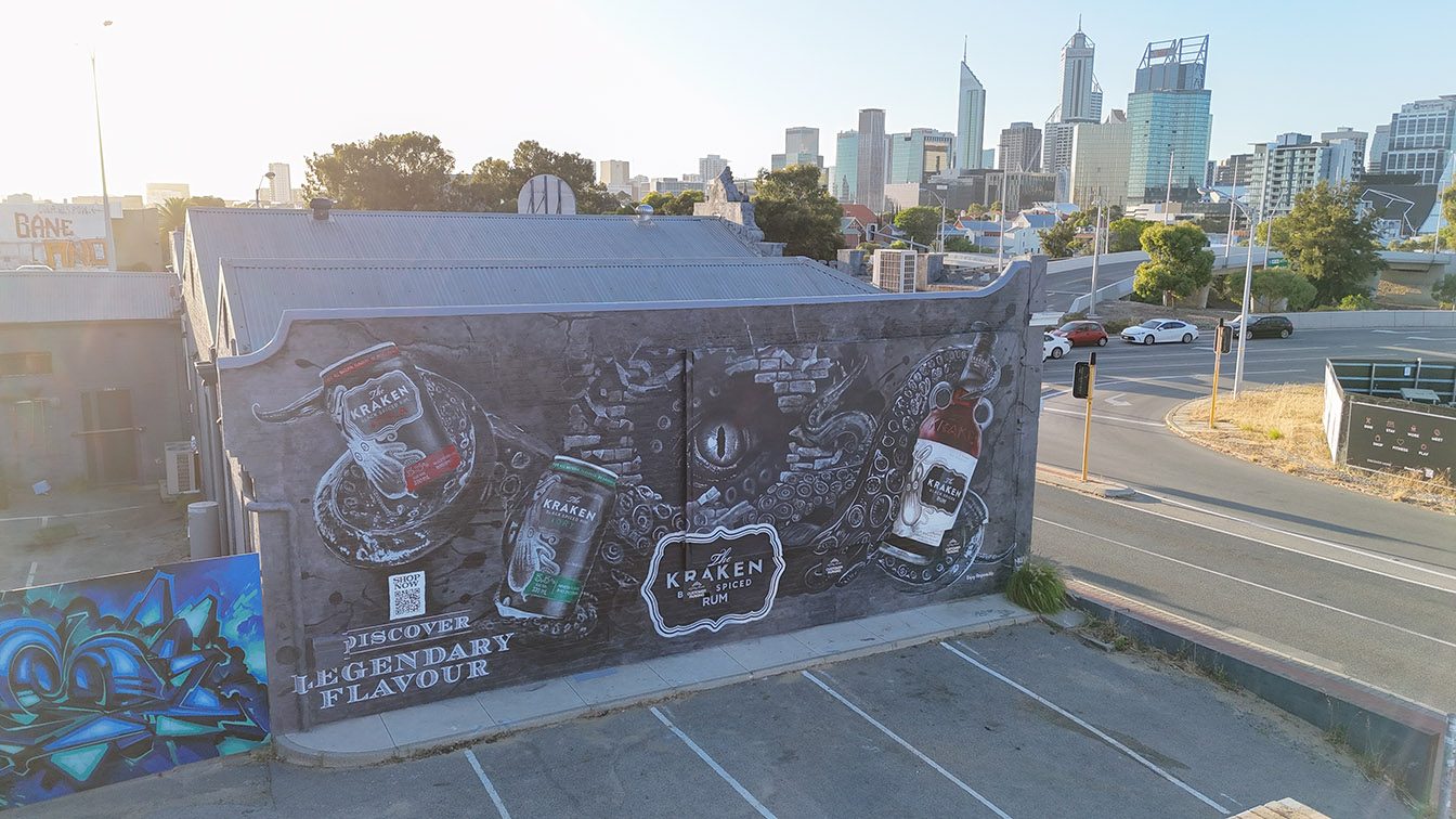 Made You Look Media has unveiled a dramatic large-format mural for Kraken Black Spiced Rum in North Perth, commissioned …